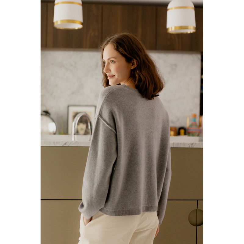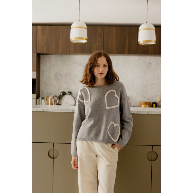 Eve, un de nos must-have de cette saison. Ce joli petit pull en laine merino extra fine et nylon recyclé vous séduira par ses cœurs abstraits qui donne une touche de romance et de féminité à vos tenues.